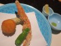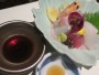 「わか松知多」の夕食は(1)見た目がきれい、(2)和食に洋の要素が入っているなど新鮮味がある、(3)コスパがとてもよい、という感じでした。青く透き通ったガラスの容器に盛られた先付けはとても涼しげだったし、イタリアン風の茄子の焼き物はよいアクセントになったし、天ぷらでは特に海老の味が濃厚で、お造りは新鮮、蛤の土瓶蒸しと南禅寺風茶碗蒸しは出汁が大変によかったうえ、混ぜごはんを目の前で炊く(固形燃料でちゃんち炊けてました!)というのはちょっと面白い試みでしたから。料理人のみなさん、いい仕事をしていると思います。この意欲が長続きしますように。