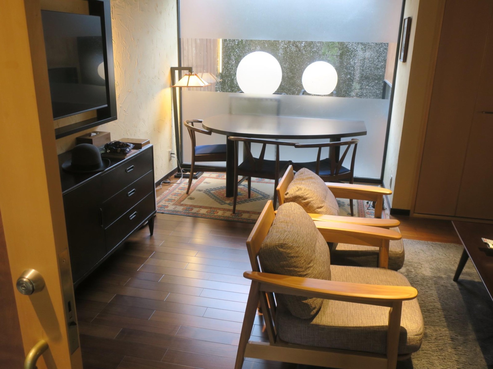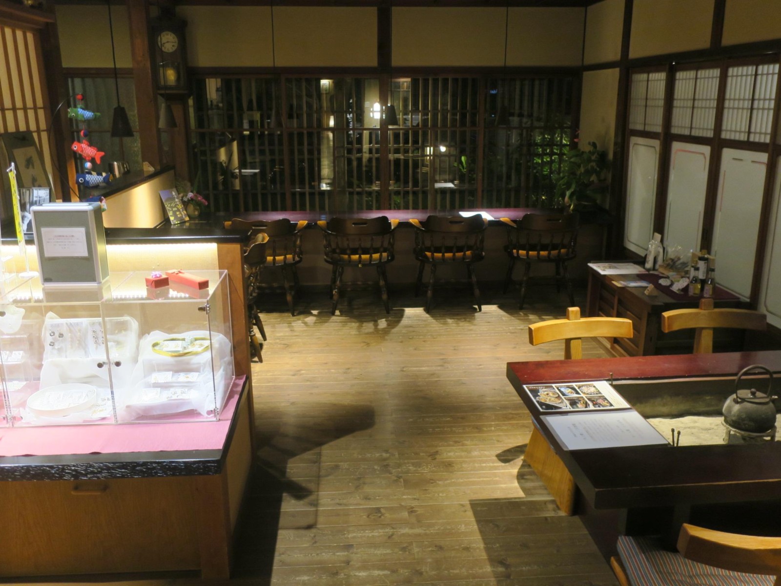 この日の宿は本館が国の登録有形文化財に指定されているという「角上楼」です。宿に着くと、まずはレトロなロビーでチェックインです。応対の方はとても日本語が上手な若いネパール人の女性でした。他の若いスタッフもほとんどがインドシナ半島以西のアジアの国々の人たちでした。