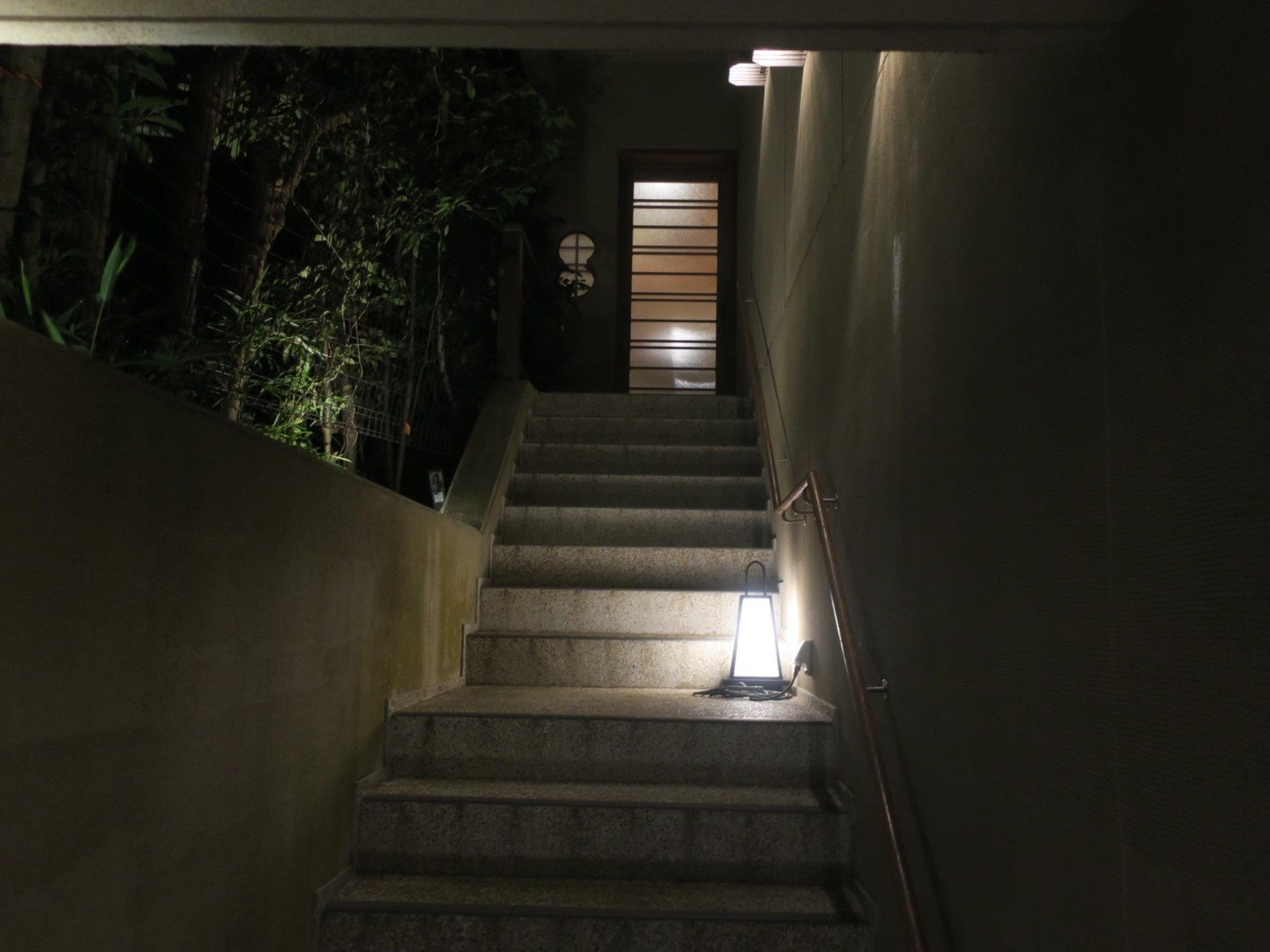 夕食のあとは、夜の館内を撮ったり、付近を散歩したり、温泉に入ったり。周辺は空き地や空き家が点在するところで、「角上楼」の姉妹宿以外にはこれといったものはありませんでしたけど。 |