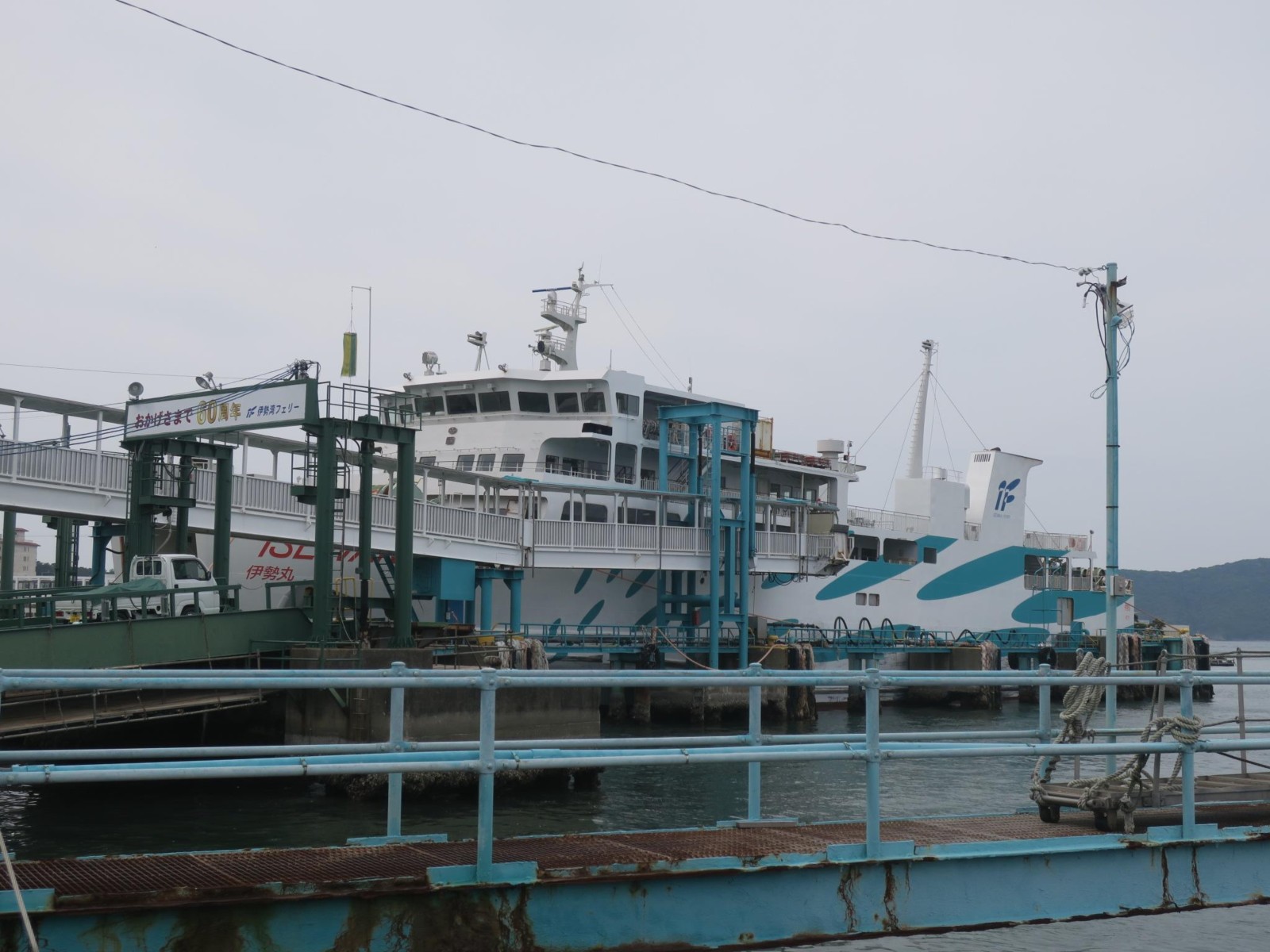 このあと近鉄の各駅停車で鳥羽駅に行き、ちょっと鳥羽マルシェを見学。それから伊勢湾フェリーの2代目の伊勢丸(2005年2月就航、2,333トン、全長73.32m、幅13.8m、旅客定員500人)で伊良湖港に向かいました。
