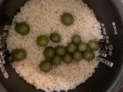炊き上がった直後のオリーブごはんは下の写真のとおりです。オリーブ油は炊く前にちょっと入れてありますが、食べる前にもう一度ごはんの上にかけます。よい材料が揃ったおかげで、今回もおいしくいただきました。