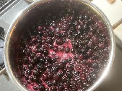 さて、今日はうちの飼い主がブルーベリージャムを作りました。今年は八戸産のブルーベリーが手に入らなかったので、高知県高岡郡佐川町の冷凍ブルーベリー(2.5kg届いたうち2kgを使用)を使っています。かなり大粒でジャムにするのはちょっともったいないくらいのブルーベリーですが、市販の品よりずっと高品質でおいしいジャムができるのでOKです。