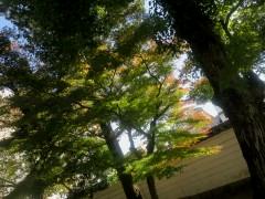 さて、今日は天気がよかったので、市街地北部の紅葉を見に行ってきました。すると、妙顕寺は本堂横がまだほとんど青もみじで、本堂前と裏は少し色付いている程度でした。見頃はまだです。