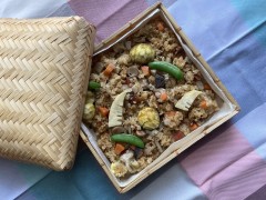 あと、もうひとつは栗のおこわ。秋に水戸の下宿のおばあさんのご実家から頂いた利平栗をふんだんに使っています。