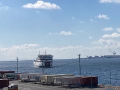 このあと船の出航などを屋上から撮ろうと思いましたが、風が強いためそこは立ち入り禁止になっていました。