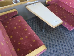 往路で乗ったフェリーは旧型の「りつりん2」です。席は自由席で。それほど混んでなかったし、早めに乗船の列に並んだので、数少ないボックス席にはスンナリと座れました。