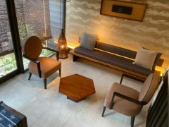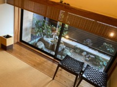 この部屋は床暖房もついてるし、坪庭もあって、とても居心地がよかったです。