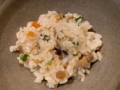 ごはんはこの時期だと通常はオリーブごはんなのですが、今回はその関係者が姉妹宿に移っていったとかで、小豆島の伝統の混ぜごはんになりました。これは炊いたあとのごはんに混ぜ物を足して作るもので、ずっと前の夏に行った時に一度食べたことがあります。おいしいごはんです。