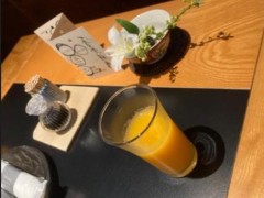 ドリンクはうちの飼い主がビール(950円)、私は小豆島産のミカンノジュース(500円)にしました。