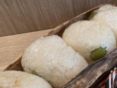 なお、朝は手違いで白いごはんが出のですが、その埋め合わせとしてお昼用にオリーブごはんのおにぎりを作っていただけました。