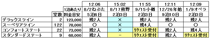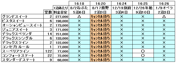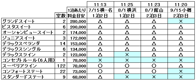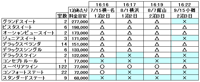 にっぽん丸で午前中に空きの多かったコースは、16時頃になっても空き室が多いままでした。