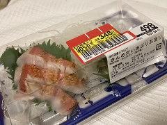 金目鯛の炙りも買いました。これも3割引きで、376円でした。味はまあまあでした。炙らなければもっとよかったかも知れません。