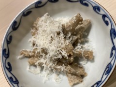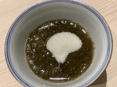 あと、デザートにはイチジクのアイスの大福が出ました。その写真は撮り忘れましたが、見た目は3年前の飛鳥IIで出たデザート(下の写真)に似ていました。餅ではなく求肥でアイスを包んでいたのです。これも大変に美味でした。以上、本日の食事の大きな画像はこちらにUPしてあります。