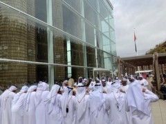 サウジ館では建物の前にも一団の人たちがいて、アラブの歌の披露もしていました。