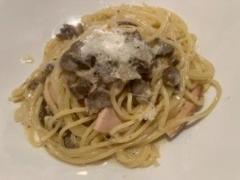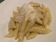 パスタは6種類くらいから選択なんですが、初夏に来た時とは品揃えが変わっていました。で、飼い主はゴルゴンゾーラチーズの載ったペンネ、私は鶏とごぼうのクリームソースパスタにしました。量はわりと多めで、しかもかなり熱々でした。これもおいしかったです。