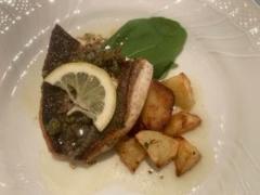 この日の魚料理は鱸のオーブン焼きでした。とても新鮮な素材がすごくフワフワに焼いてありました。素晴らしいです。