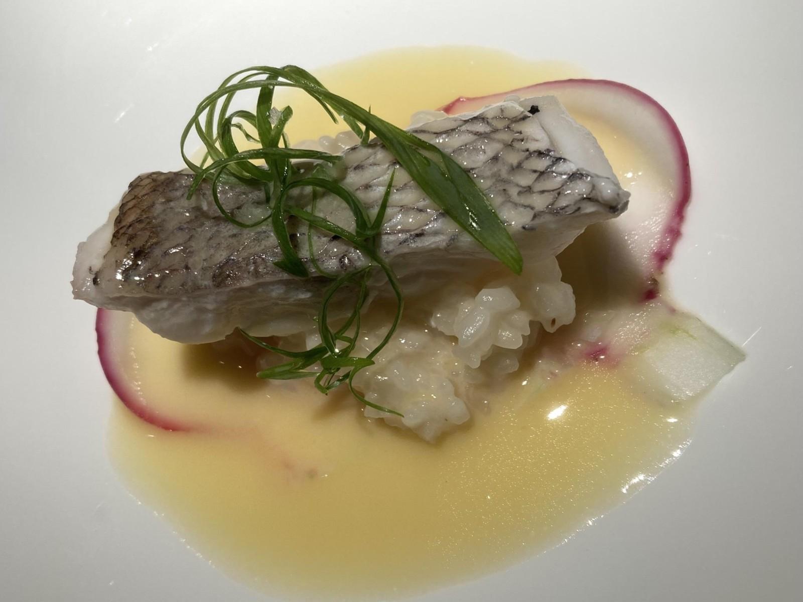 鯛のポワレ(下には新生姜のリゾットが)