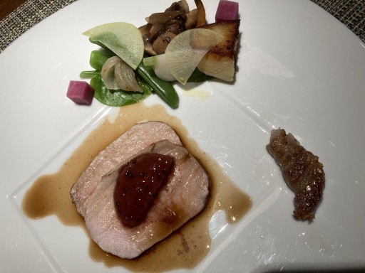栗豚のローストの赤ワインバター添えと季節野菜