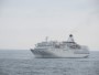 ミニ遠足のあとは、にっぽん丸に戻って午後3時に新宮港を出発。そして午後4時半ごろに早めの夕食(今晩は和食、もちろん美味!)を食べているうちに熊野沖に到着しました。するとあとからぱしふぃっくびいなすもやってきて、午後7時となり、外も暗くなってきました。 |