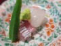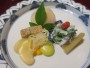 この日の夕食は「亀の井別荘」の本館の中のレストランでいただきました。まず出たのは稚鮎の天ぷらです。で、次は季節の前菜。そら豆、揚げ蓮根、松風、ウド、緑の野菜の和え物、平目の寿司が出ました。寿司はふつうでしたが、野菜は新鮮でよかったです。特にウドがなんだか不思議においしかったです。お造りは大分産の鯛と鯵でした。味はまあまあといったところですが、そこに添えてあったオクラはすごくおいしかったです。帆立の真丈は私の好きな味でした。細切りの茗荷のサクサクもよかったです。大分牛のヒレステーは肉のクオリティーも焼き方も素晴らしく、玉葱の甘さが効いたソースもよかったです。その次は破竹の若竹煮が出てきました。とろみのついたあんかけで。その次は魚でした。長崎産ののどぐろです。ちょっと塩が強めに感じたけど、素材に脂はよく乗っていました。また、サツマイモはレモン風味に炊いてあって、初夏らしい爽やかな味でした。そしてこのあと、特別サービスでもう一品がありました。「希望者のみですが、よろしければ蕎麦もどうぞ」と言われて「ハイ」と答えたら、かき揚げ付きでかなり本気の量の蕎麦が出てきました。その次のごはんでは、お供に出た鰤のヅケが特筆すべきおいしさでした。なお、この鰤のヅケを初めて知ったのはにっぽん丸の別府クリスマスクルーズです。デザートはカボスゼリーに黒豆とクリームを載せたもので、食後のお口直しにと小さなグラスのアイスコーヒーもついていました。