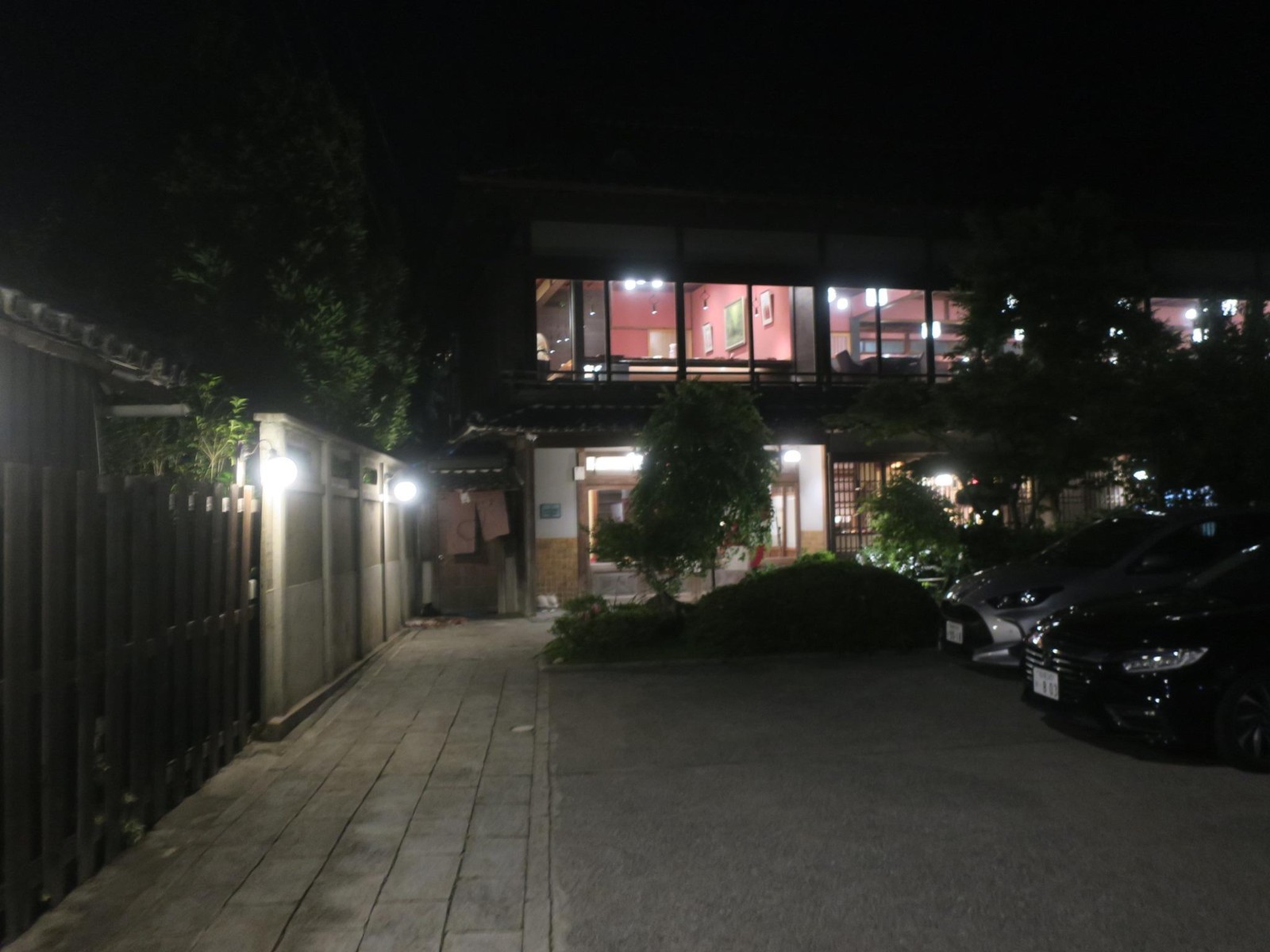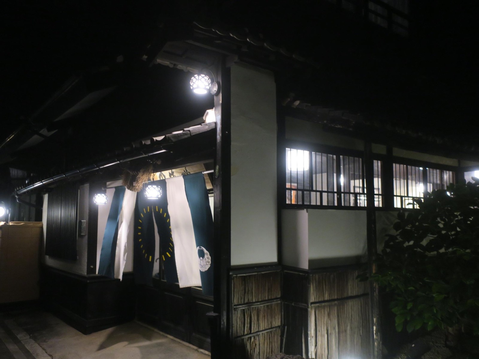 夕食のあとは、夜の館内を撮ったり、付近を散歩したり、温泉に入ったり。周辺は空き地や空き家が点在するところで、「角上楼」の姉妹宿以外にはこれといったものはありませんでしたけど。 |