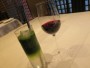 フリーのドリンクはうちの飼い主が赤ワイン、私は抹茶ソーダにしました。