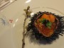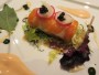 料理はまだ終わりません。次はスモークサーモンと蟹のロール仕立てが出てきたのですが、これは塩がかなりきつくて、ドリンクで流し込まないと食べられず。思わずウッと来てしまいました。