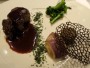 以上を食べたところでお腹はだいぶいっぱいになってきました。で、次に出てきたのはフォアグラのムース・マンゴ風味だったのですが、これは硬めでムースというよりパテという感じでした。しかもフォアグラの味はちょっと重いうえ、量も多めでした。