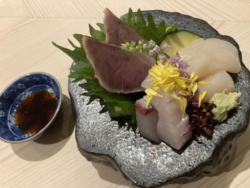 お造り: かんぱち、貝柱、よこわ