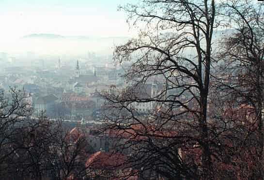 時計台のある山から撮影した冬のグラーツの朝(といっても9時過ぎ)です。霞のかかった風景が印象的でした。