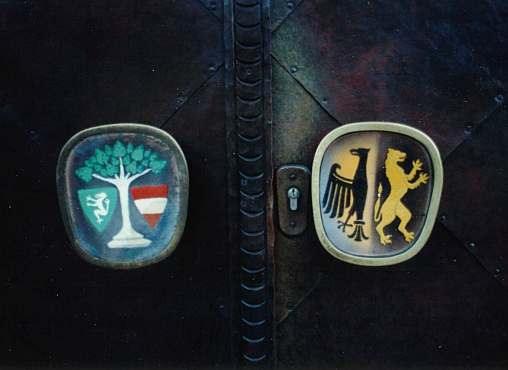 旧市内の家の扉にいくつかの紋章が。偉い人の家だったのかな?