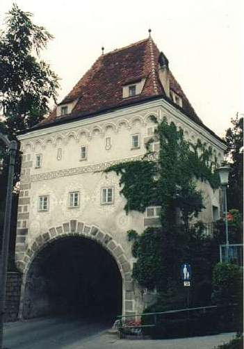 オーストリアの古い町にはこうした市門がよく残っています。
