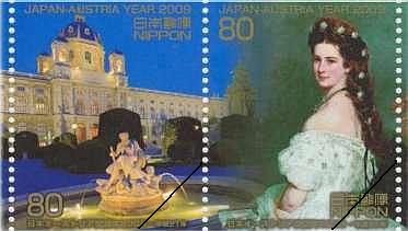 ついでながら、日本と国交を始めた頃のオーストリアは「オーストリア=ハンガリー帝国」といいましたから、2009年は日本ハンガリー交流140周年でもあります。そこで確認してみたところ、「日本ハンガリー交流年2009」という切手シートもちゃんと出ていました。で、その中にシシーの肖像の切手はないのですが、当人の名を冠した「エリザベート橋」のなら1枚入っています。この橋はハンガリーが共産党の支配下にあったころでも、帝政時代の名前を維持していたんですよ。ウィーンでは困ったちゃんのシシーでしたが、ハンガリーではニコちゃんだったのです。